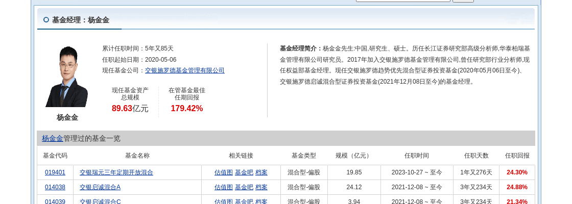 交银趋势混合A和交银定期支付双息平衡混合的基金经理分别是杨金金和黄鼎。杨金金,中国籍,拥有研究生学历和硕士学位,曾在长江证券和华泰柏瑞基金任职,2017年加入交银施罗德,现任权益部基金经理,管理着包括交银施罗德趋势优先混合型证券投资基金在内的多只基金。