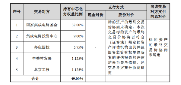 根据中芯国际披露的交易预案,公司拟通过发行A股股份的方式,收购控股子公司中芯北方集成电路制造(北京)有限公司剩余49%的股权。交易对手方包括国家集成电路产业投资基金一期股份有限公司等5名股东。此次收购完成后,中芯国际对中芯北方的持股比例将从51%提升至100%,实现全资控股。