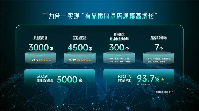 运营力层面,艺科聚焦“流量经营”而非单纯获取。其会员生态拥有超3000万会员,贡献42%的入住率;企业商旅生态通过生态合作与企业直通模式拓展B端市场;全域触达体系融合传统OTA与新媒体矩阵,提升综合营收。截至2025年7月,艺科已签约近4500家酒店,开业近3000家,覆盖国内300余个城市及日本、马来西亚等7国,主流OTA平台好评率达93.7%。