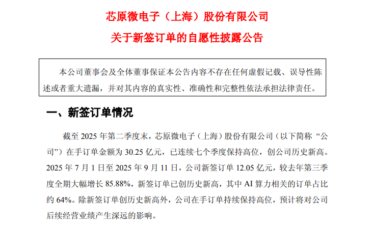 订单数据印证了市场对芯原技术路线的高度认可。截至2025年第二季度末,公司在手订单达30.25亿元,连续七个季度保持高位。第三季度新签订单12.05亿元,同比激增85.88%,其中AI算力相关订单占比64%。持续走高的订单规模为未来业绩增长提供坚实保障。