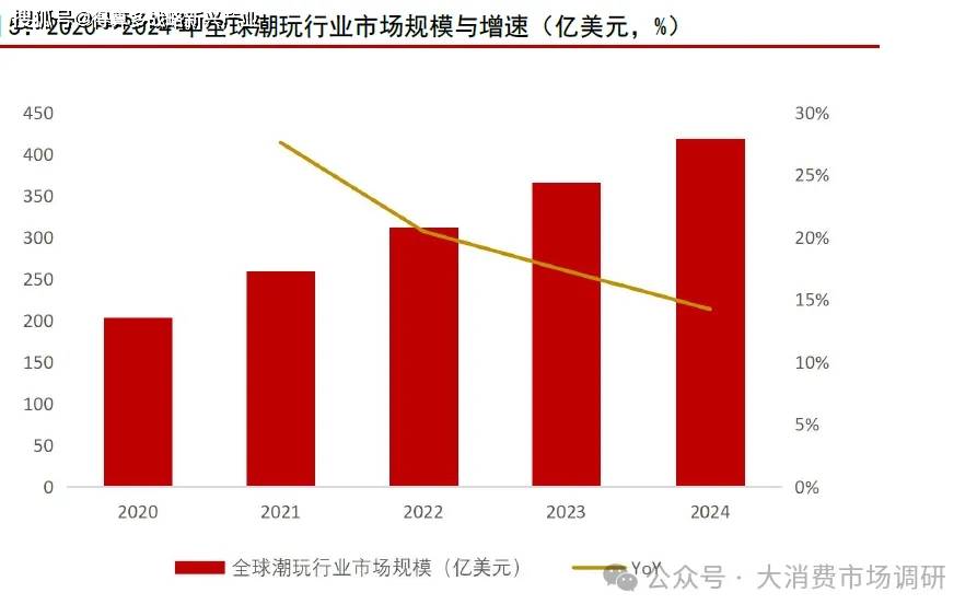 近年来,全球潮流玩具市场规模呈现出持续增长的态势。潮流玩具文化凭借其独特的IP魅力、个性化表达以及收藏属性,成功打破了地域与年龄的限制。中商产业研究院的数据表明,2020 - 2024年,全球潮流玩具行业市场规模从203亿美元一路攀升至418亿美元,年均复合增速接近20%。