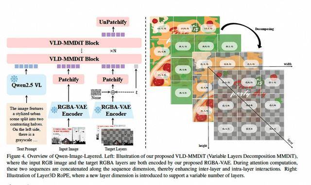Qwen-Image-Layered通过引入分层处理机制,构建起对三维空间的立体认知。研发团队开发的RGBA-VAE编码技术,在传统RGB色彩模式基础上新增透明度通道(Alpha),使模型具备图层分离能力。配合创新的VLD-MMDiT架构与3D位置编码系统,模型能够自动推断被遮挡区域的背景纹理,实现从"像素预测"到"结构重组"的技术跨越。这种处理方式更接近人类设计师的思维模式,为图像编辑提供了前所未有的操作自由度。