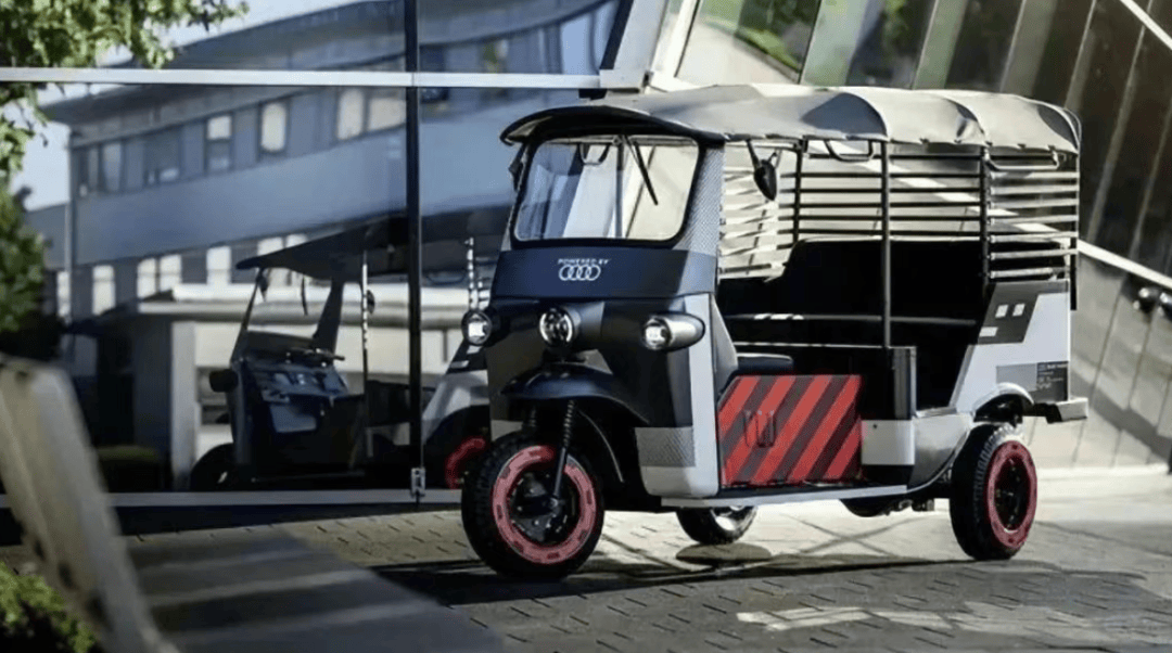 更令人惊讶的是,豪华汽车品牌奥迪也加入了这场“三轮车热潮”。几年前,奥迪与印度初创公司Nunam合作,推出了一款电动三轮车,这款车不仅自带雨棚、合法上路,还因其亲民的价格——据说仅售1.2万元人民币,被网友戏称为“平民代步神器”。这款车的设计灵感源自印度传统的“突突车”,但经过奥迪的改造后,瞬间从“村口拉货款”升级为“德系豪华版”。