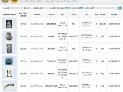 中国被盗(丢失)文物信息发布平台公开信息显示,2025年,全国共发布52件套被盗或丢失文物信息,其中贵州省博物馆(老馆)有29件套,包括丢失的28件套、被盗的1件,最早的丢失于40年前。 此外,贵州省博物馆丢…