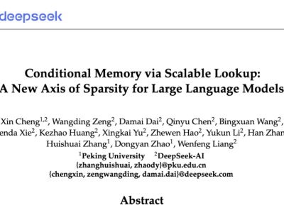 2026年1月12日晚,DeepSeek与北京大学合作发布了一篇新论文,标题为《基于条件查找的条件记忆:大型语言模型稀疏性的新维度》。 尽管条件记忆模块的直观效果主要体现在知识检索上,但DeepSeek团队还…