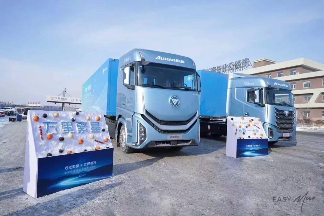一场跨越东北与华北的寒区物流挑战正式拉开帷幕。福田欧曼银河9与银河5M纯电重卡组成的车队以长春为起点,途经白山、沈阳、葫芦岛、唐山,最终抵达天津,全程约1200公里。这条串联东北工业基地与京津冀经济圈的物流干线,冬季最低气温接近-30℃,积雪覆盖、山区坡道等复杂路况交织,成为检验新能源重卡性能的天然试验场。此次征程不仅是对车辆在极端环境下动力响应、能耗控制、稳定性及舒适性的全面验证,更旨在为纯电重卡在寒区的规模化应用提供数据支撑与实践参考。
