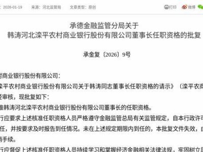 近日,国家金融监督管理总局正式批复了河北丰宁农村商业银行股份有限公司的一项重要人事任命。根据批复文件,荆志军同志已获核准担任该行董事长一职,其任职资格自行政许可决定作出之日起正式生效。
