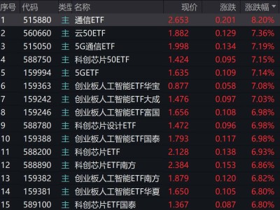 通信概念股强势上扬,5G相关ETF跟涨超8%,