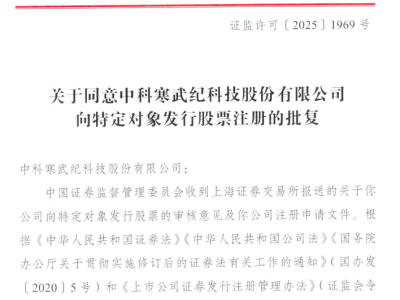 寒武纪定增申请获证监会“绿灯” 拟募资近40亿抢抓